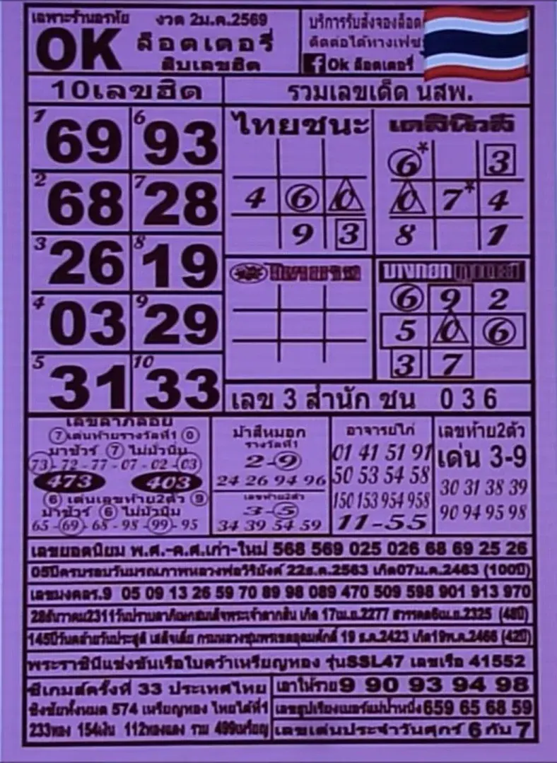 10 เลขฮิต "OK ล็อตเตอรี่" งวดวันที่ 2 มกราคม 69..ส่องก่อน รวยก่อน!!