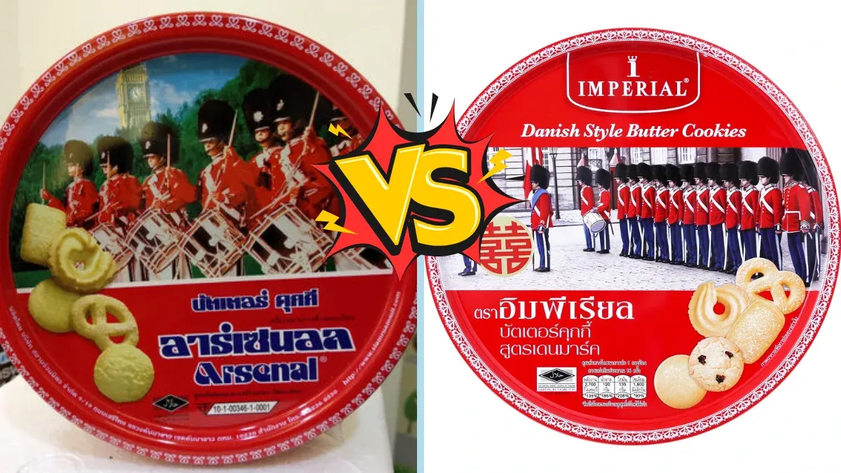 เมื่อเทศกาลปีใหม่เวียนมาถึง สิ่งหนึ่งที่กลายเป็นสัญลักษณ์คู่บ้านคนไทยอย่างหลีกเลี่ยงไม่ได้คือ "กล่องเหล็กสีแดง" ที่มักถูกนำมาวางซ้อนกันเป็นภูเขาในห้างสรรพสิ่งค้า แม้หลายคนจะล้อเลียนว่าเป็นของขวัญสุดจำเจ หรือเปิดมาแล้วอาจเจออุปกรณ์เย็บผ้าแทนขนม แต่ปฏิเสธไม่ได้ว่าคุกกี้เนยเหล่านี้คือรสชาติแห่งความทรงจำที่อยู่คู่สังคมไทยมาอย่างยาวนาน โดยเฉพาะสองแบรนด์ยักษ์ใหญ่อย่าง "อิมพีเรียล" และ "อาร์เซนอล" ที่ดูเผินๆ อาจจะคล้ายกัน แต่จริงๆ แล้วมีความแตกต่างที่น่าสนใจซ่อนอยู่