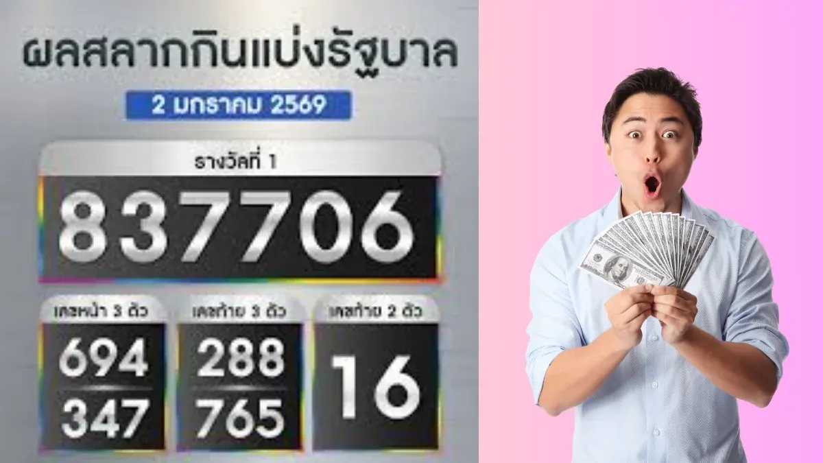 สรุปผลรางวัลสลากกินแบ่งรัฐบาล งวดวันที่ 2 มกราคม 2569