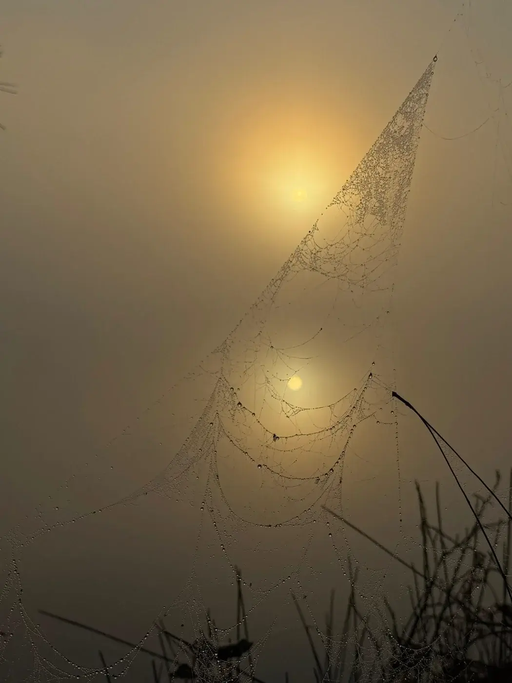 เพื่อความเข้าใจนั้นเราจะเห็นในส่วนของหยากไย่ที่โดนในส่วนของหมอกในยามเช้านั้นตกใส่ ทำให้ ร่องรอยของหยดน้ำที่เรานั้นเห็นคือ หยดน้ำที่ใส้ลงไปนั่นคือ สายระโยงระยางที่ส่งต่อไปยังความสุขอีกอย่างนั้น เราเองมองเหมือนสายรุ้งที่ใส่ในช่วงเวลาของหยดน้ำ ลวดลายที่สวยงาม