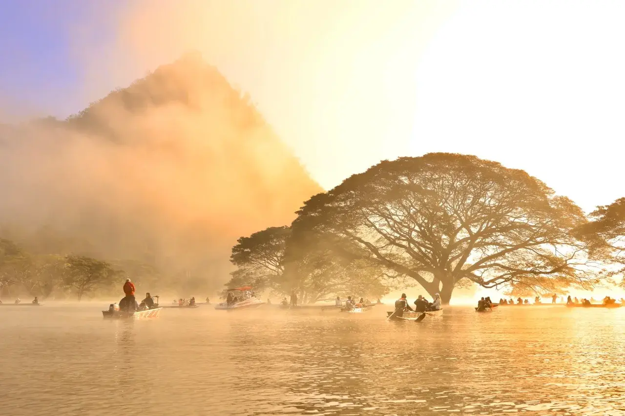 🌿✨ สุด Unseen ปีละครั้ง! ล่องเรือชมต้นฉำฉากลางน้ำ อายุกว่า 100 ปี งดงามกลางหมอกยามเช้า เขื่อนแม่งัด เชียงใหม่