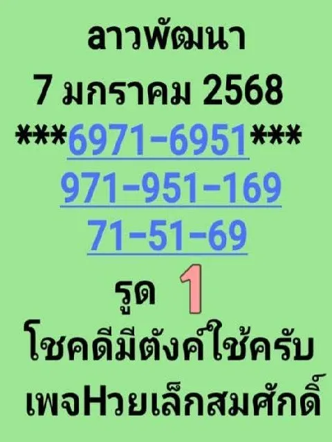 แนวทางหวยลาวพัฒนา งวดวันที่ 7 มกราคม 2569