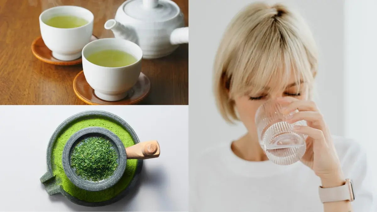 6.ชาเขียว ชาเขียวจะมีสารตัวนึงที่จะมาช่วยในการลดการหลั่ง DHT (Dihydrotestosyeron) ที่จะไปยับยั้งการสร้างเส้นผม คือ สารแอนตี้แอนโดรเจน สารตัวนี้จะไปช่วยป้องกันผมร่วง ช่วยทำให้ผิวพรรณสดใสและกระตุ้นการไหลเวียนของเลือด
