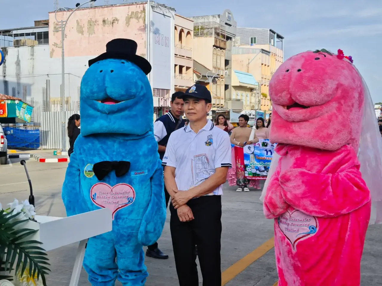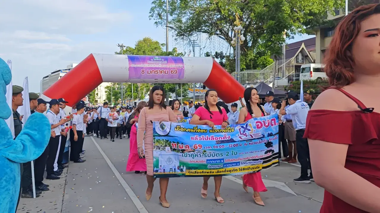 กกต.ตรัง แห่มาสคอตพะยูน-ตุ๊กๆหัวกบ ชวนเลือกตั้ง อบต.11 ม.ค.69