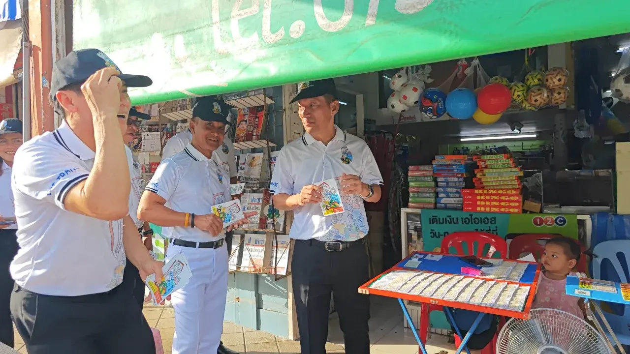 จากนั้นผู้ว่าราชการจังหวัดตรังพร้อมด้วยหัวหน้าส่วนราชการ ได้เดินแจกเอกสารประชาสัมพันธ์การเลือกตั้ง กับร้านค้าประชาชน