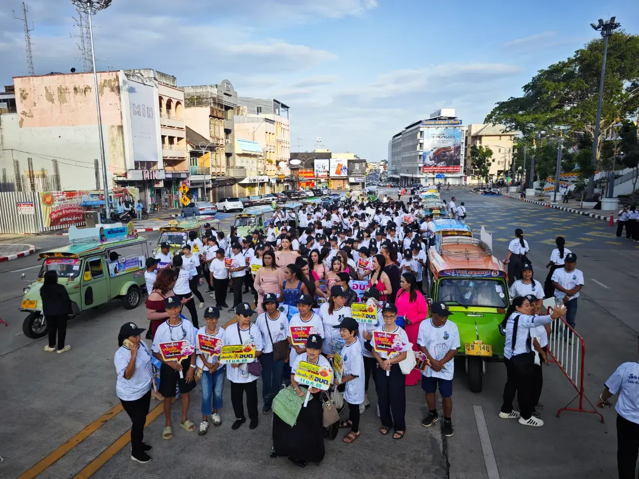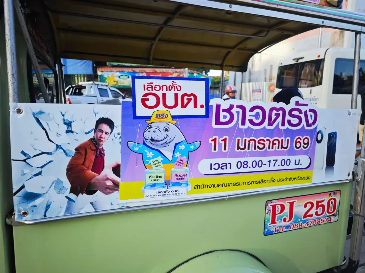 ตรัง กกต.ตรังสร้างสีสัน นำมาสคอตพะยูน–ตุ๊กๆหัวกบ 20 คัน แห่รณรงค์รอบเขตเทศบาลนครตรัง ชวนใช้สิทธิเลือกตั้ง อบต. 11 ม.ค.69
