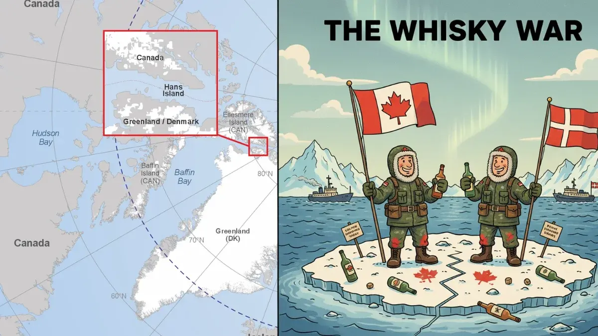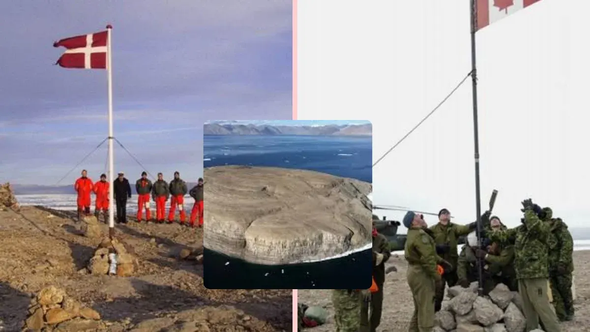 ตำนานสงครามสุดละมุน: เริ่มต้นในปี 1973 เมื่อแคนาดาและเดนมาร์กตกลงเขตแดนกันไม่ได้ ทหารทั้งสองฝ่ายจึงใช้วิธีสลับกันขึ้นไปถอนธงคู่แข่งแล้วปักธงตนเองแทน พร้อมทิ้ง "ของฝาก" เป็นวิสกี้แคนาดาหรือบรั่นดีเดนมาร์กไว้ให้อีกฝ่าย จนกลายเป็นธรรมเนียมปฏิบัติที่สืบเนื่องยาวนานเกือบ 50 ปี