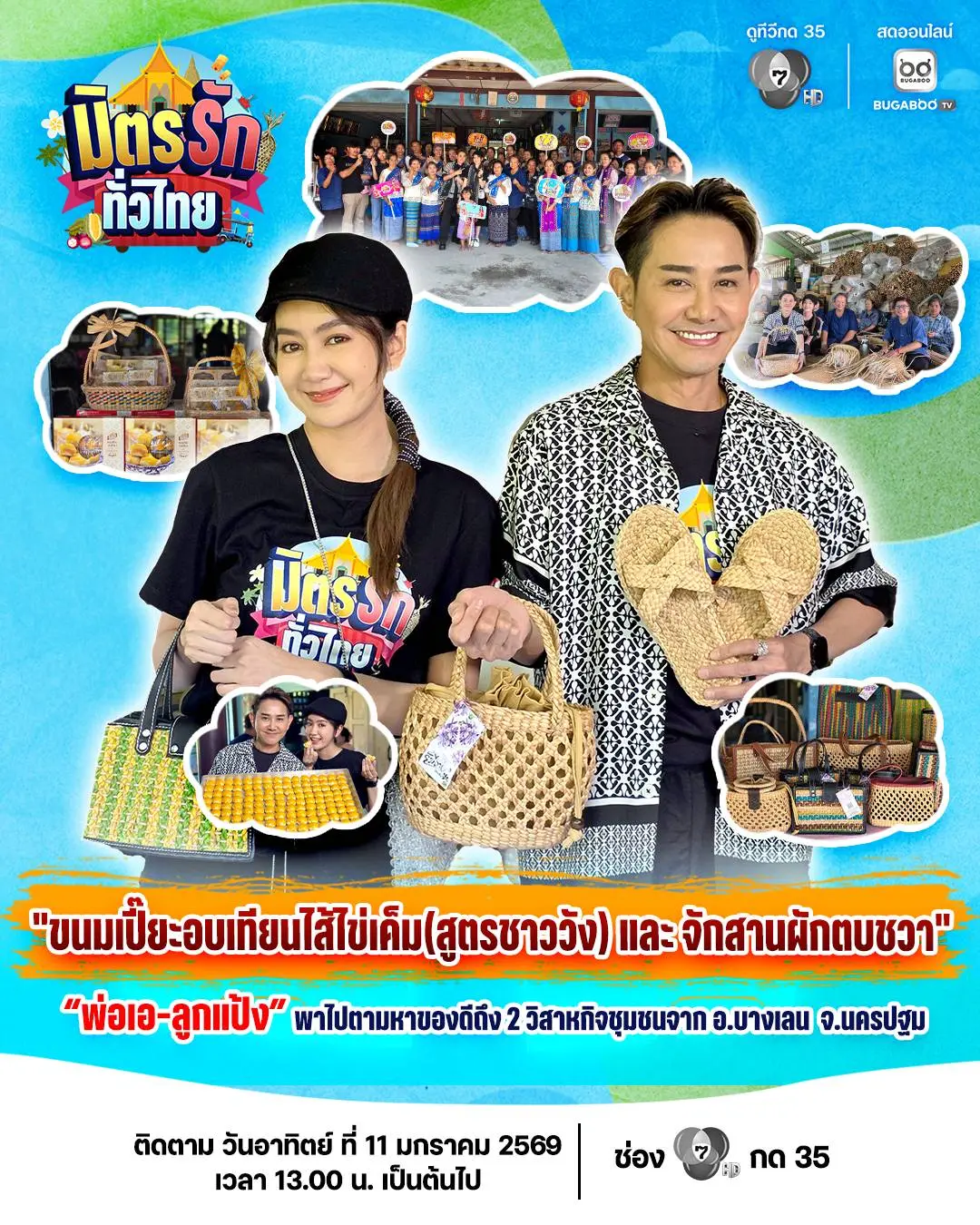 🎥 #มิตรรักทั่วไทย พ่อเอ ลูกแป้ง พาไปตามหาของดีถึง 2 วิสาหกิจชุมชน อ.บางเลน จ.นครปฐม👏🏻 กับขนมเปี๊ยะอบเทียนไส้ไข่เค็ม (สูตรชาววัง) และจักสานผักตบชวา👍🏻
