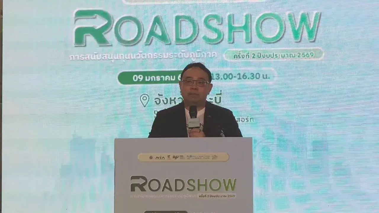 เมื่อวันที่ 9 มกราคม 2569 สำนักงานนวัตกรรมแห่งชาติ (องค์การมหาชน) หรือ NIA ร่วมกับอุทยานวิทยาศาสตร์ มหาวิทยาลัยสงขลานครินทร์ จัดกิจกรรม “Regional Innovation Roadshow ภาคใต้ตอนล่าง ครั้งที่ 2/2569” ณ ห้องประชุมเกาะกลาง โรงแรมกระบี่ ฟรอนท์ เบย์ รีสอร์ท จังหวัดกระบี่ โดยมีผู้ประกอบการเอสเอ็มอี สตาร์ทอัพ นักวิจัย และเครือข่ายนวัตกรรมเข้าร่วมอย่างคึกคัก