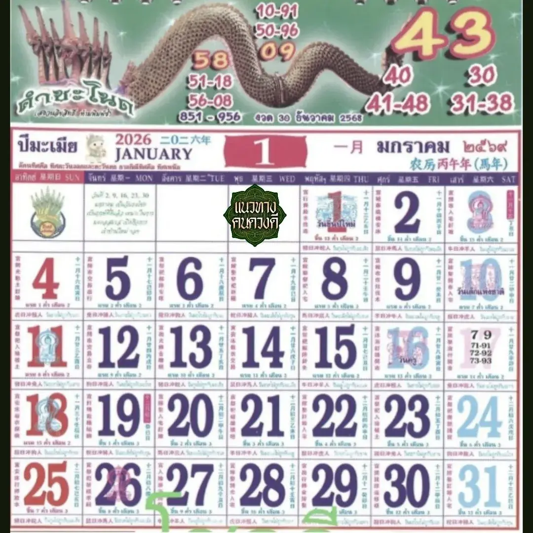 เลขเด็ดหวยดัง หวยปฏิทินคำชะโนด งวด17 มกราคา 2569 สายตรงจากดงนาคา