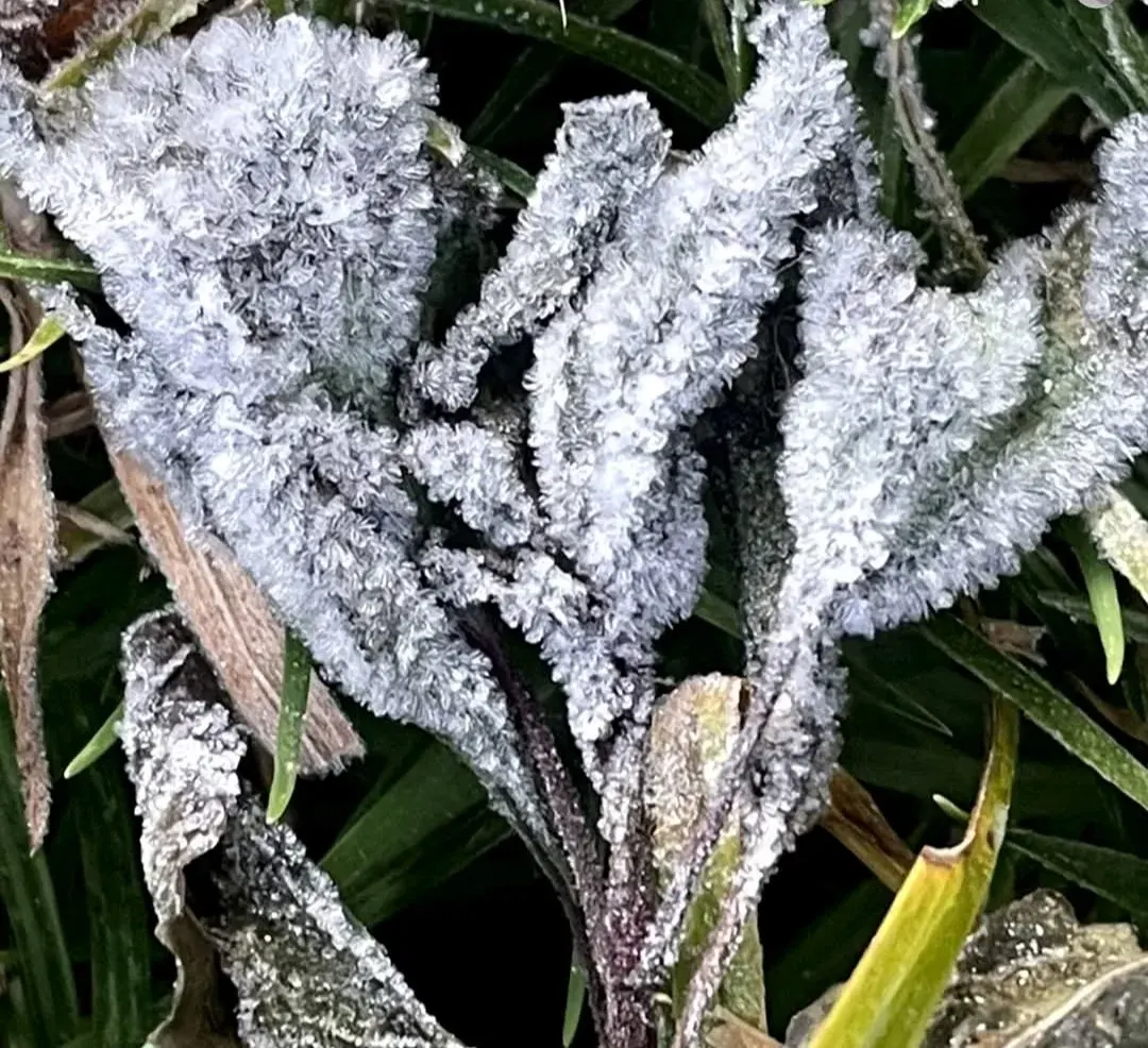 ในส่วนของใบไม้ที่มีน้ำหยดในตอนเช้าจะทำให้เกิดความแข็งและกลายเป็นเกล็ดที่คงน่าในส่วนของความงดงามที่ยากจะทดแทนในความอุ่นของร่างกาย
