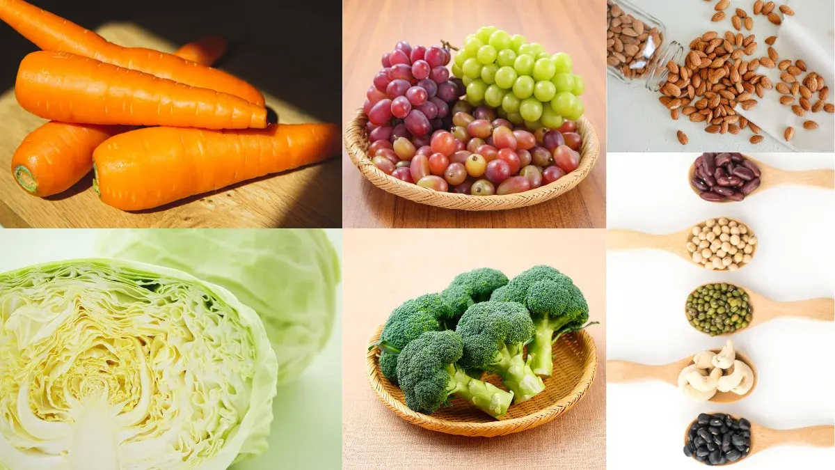 1.แครอท ในแครอทมีวิตามินที่หลากหลายชนิด อย่างเช่น วิตามินเอ บี1 บี 2 ซี วิตามินเค มีกรดโฟลิกฟอสฟอรัส โซเดียม โพแทสเซียม ธาตุเหล็ก สังกะสี ทองแดง มีความสามารถในการช่วยบำรุงตับ (ตามศาสตร์ของแพทย์แผนจีน) และ ช่วยในการบำรุงเลือด บรรเทาอาการอาหารไม่ย่อยได้