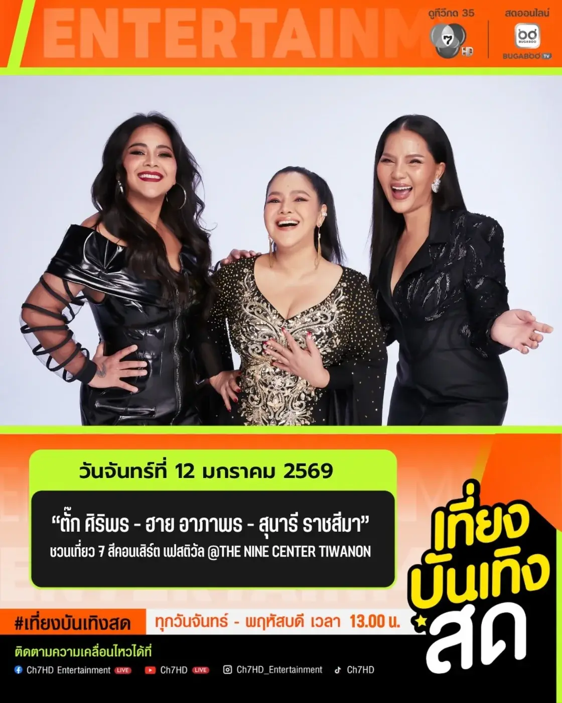 #เที่ยงบันเทิงสด วันนี้ พูดคุยสนุก ๆ กับ 3 ตัวแม่ ตั๊กศิริพร / ฮาย อาภาพร และสุนารี ราชสีมา ก่อนขึ้นเวที 7สีคอนเสิร์ต เฟสติวัล เปิดช่อง 7HD เวลา 13.00 น.