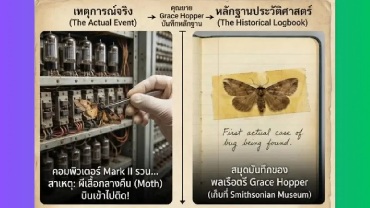 จุดเริ่มต้นของ "Bug" ตัวแรกของโลก: เมื่อข้อผิดพลาดไม่ใช่แค่โค้ด แต่คือแมลงตัวเป็นๆ!