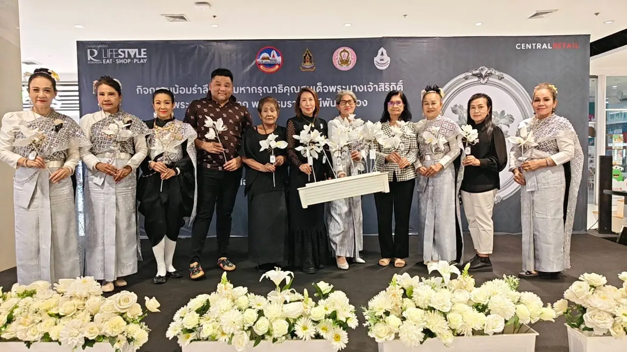 ถวายอาลัยเทอดไทองค์พระพันปีหลวง🪔 สภาวัฒนธรรมจังหวัดสมุทรปราการนำทีมโดยคุณศุภากร กัลยาศิลป์ จัดสอนทำดอกไม้ ร่วมฟัอนไว้อาลัยสมเด็จแม่แห่งแผ่นดินฯที่โรบินสันสมุทรปราการ
