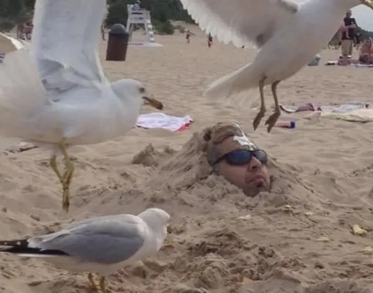 1. สำหรับใครที่ยังคงสงสัยว่าการถูกฝังอยู่ในผืนทรายไม่น่าจะเป็นความคิดที่ดีเท่าไหร่จริงไหมนะ ?