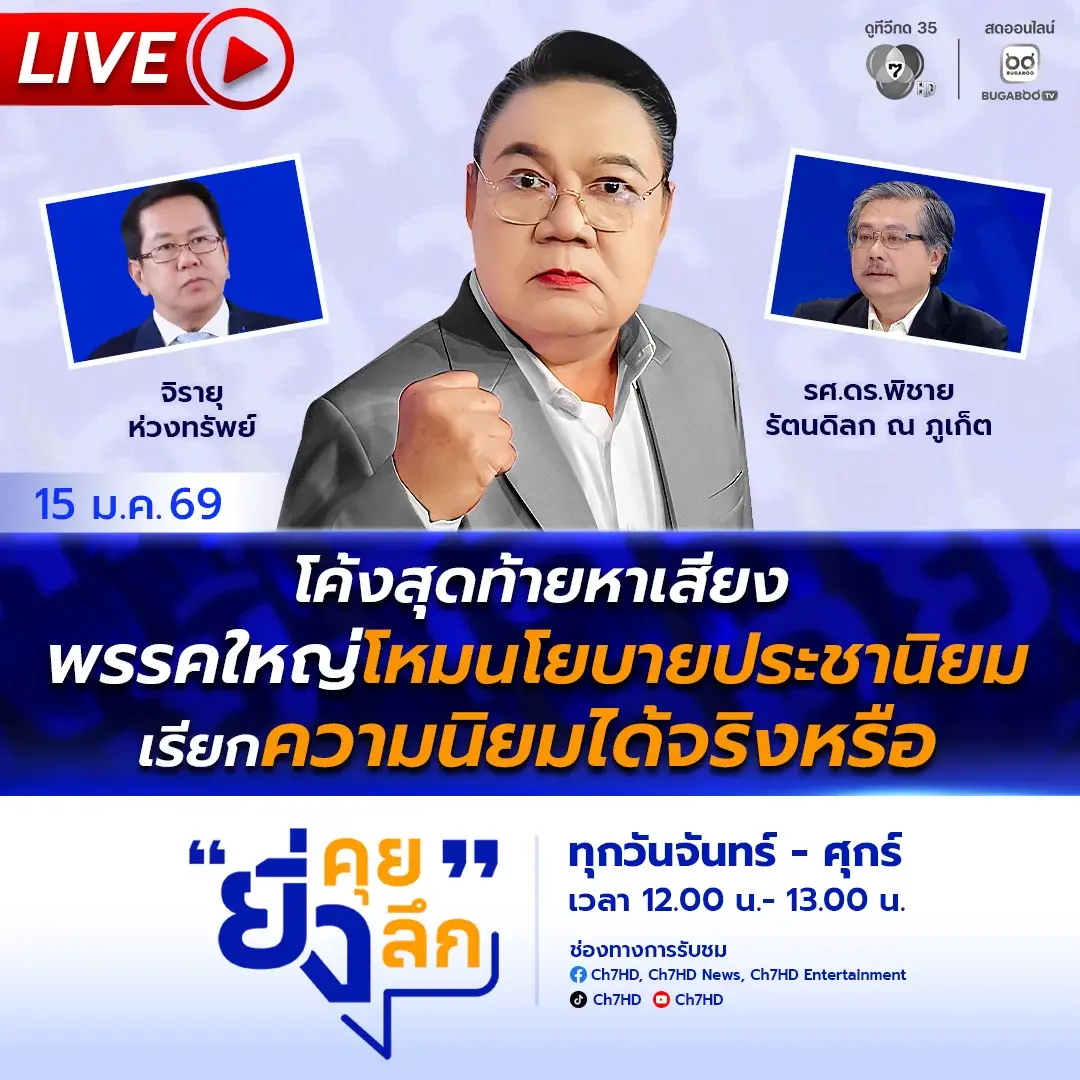 ยิ่งคุยยิ่งลึก วันนี้กับประเด็นโค้งสุุดท้ายหาเสียง พรรคใหญ่โหมนโยบายประชานิยม