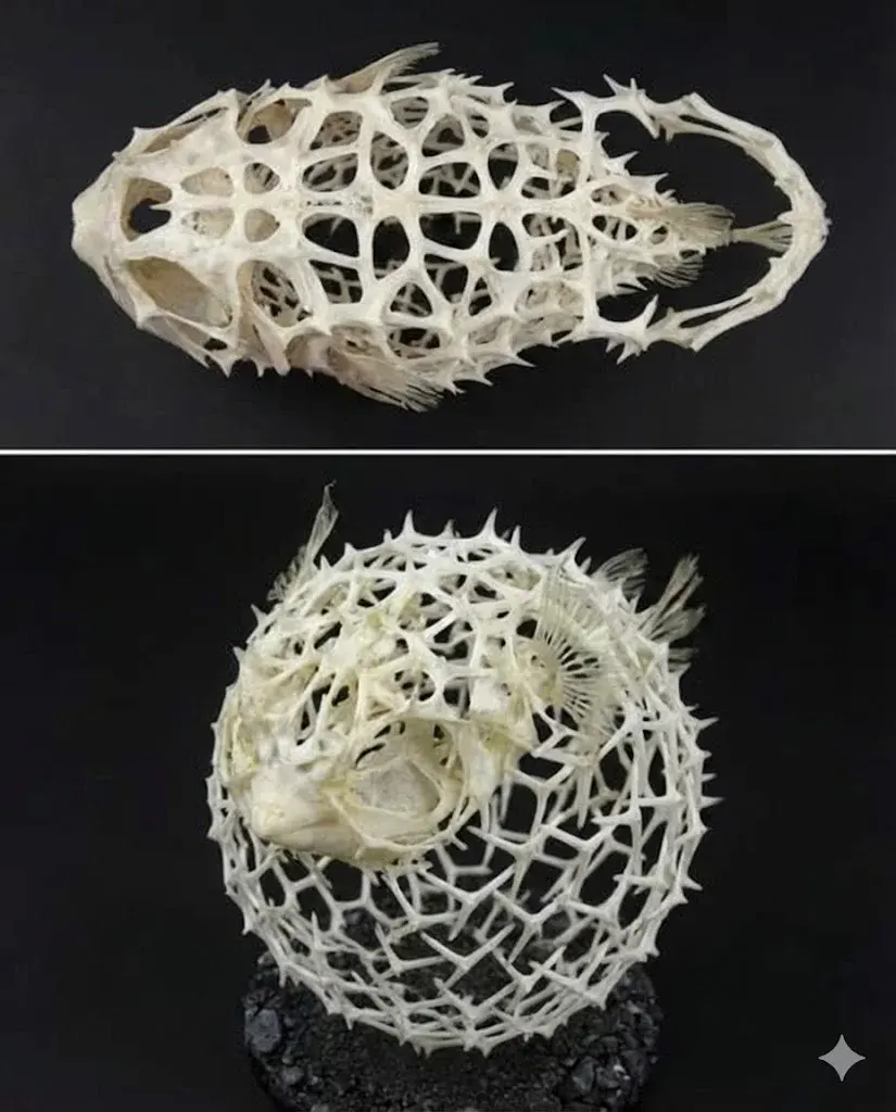 นี่คือภาพของโครงกระดูกของปลาปักเป้า "ชุดเกราะ" และ "กลไกการพองตัว" ที่ไม่มีใครเหมือน