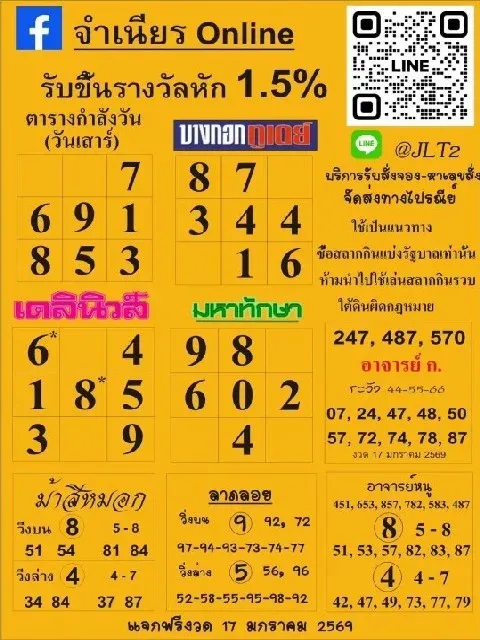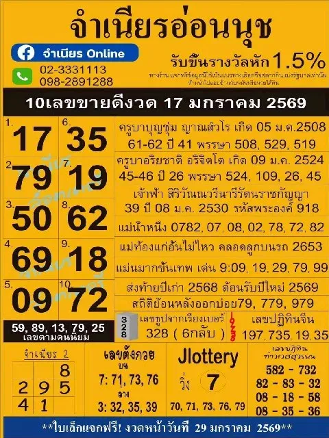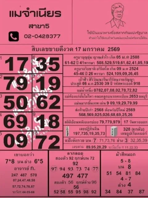 เลขเด็ด เลขมาเเรง เลขดัง "รวมหวยเด็ดสำนักดัง vol.17" งวดวันที่ 17 มกราคม 2569