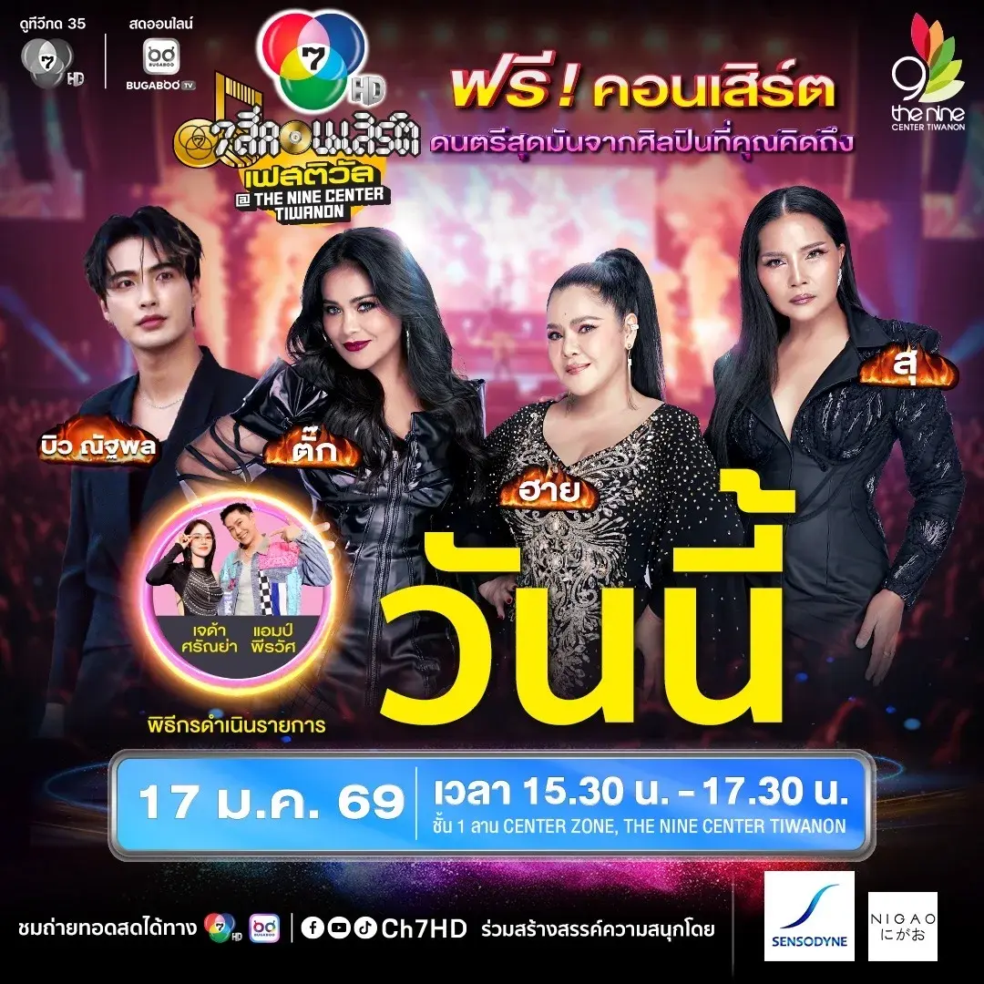 🔥 พบกับ 3 แม่เป้ง เขย่งสุดตัว ตั๊ก ศิริพร, ฮาย อาภาพร, สุ สุนารี และนักแสดงหนุ่มหล่อ บิว ณัฐพล จัดเต็มทุกจังหวะความสนุก ในงาน 7 สีคอนเสิร์ต เฟสติวัล @THE NINE CENTER TIWANON