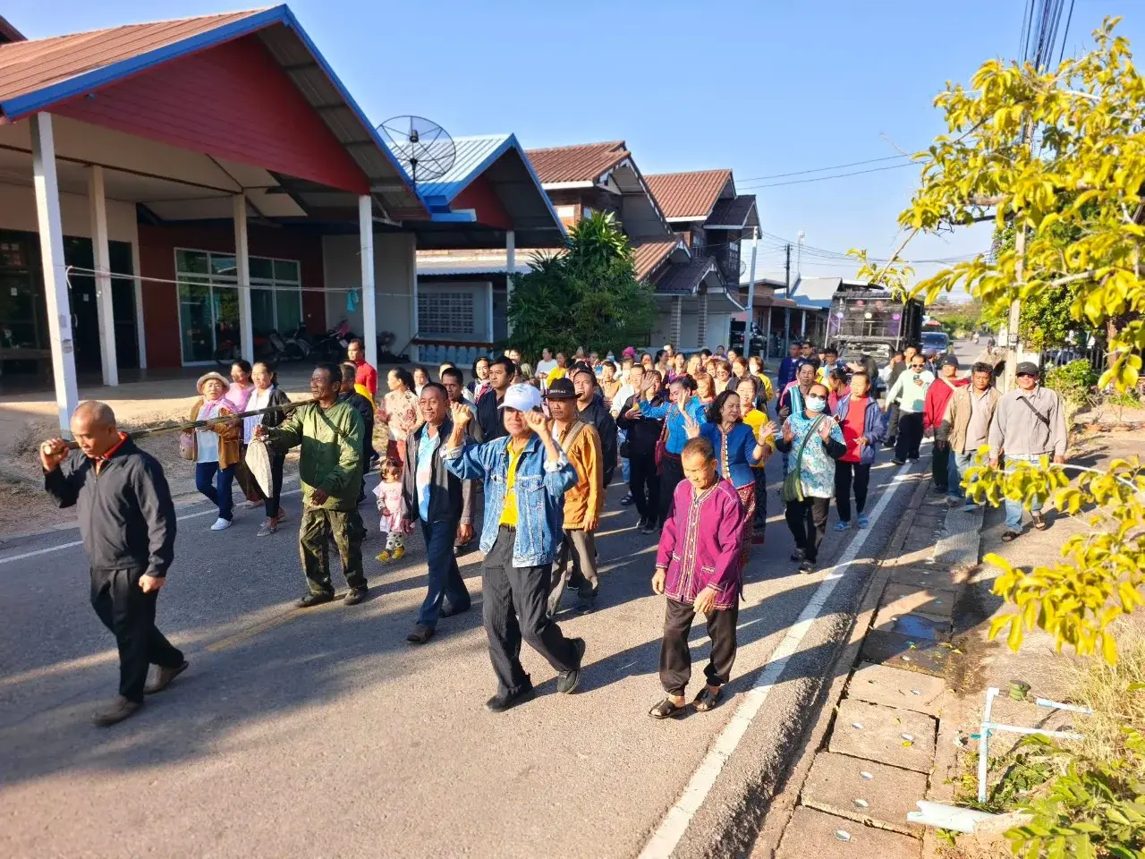 วันนี้มาดําการแห่เพื่อย้ายสถานที่ของกะลอ ปลดจากบ้านผู้ใหญ่เดิมไปยังบ้านผู้ใหญ่บ้านคนใหม่ ชาวบ้านก็ต่างออกมาฟ้อนรำนำส่งหะลออย่างมีความสุข