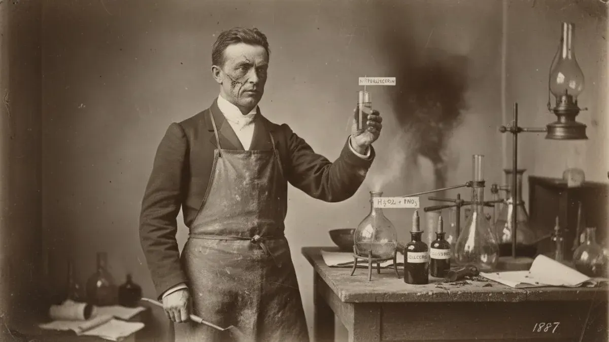 โนเบลมองเห็นศักยภาพของไนโตรกลีเซอรีนในงานก่อสร้างและเหมืองแร่ เขาพยายามหาวิธี 'ทำให้มันนิ่ง' หรือเสถียรมากขึ้น ซึ่งต้องแลกมาด้วยความสูญเสียครั้งใหญ่เมื่อน้องชายของเขาเสียชีวิตจากการระเบิดในโรงงาน แต่ในที่สุดโนเบลก็ทำสำเร็จด้วยการผสมไนโตรกลีเซอรีนเข้ากับ 'ดินเบา' (Kieselguhr) จนกลายเป็น 'ไดนาไมต์' (Dynamite) ที่โลกเรารู้จักกันดี