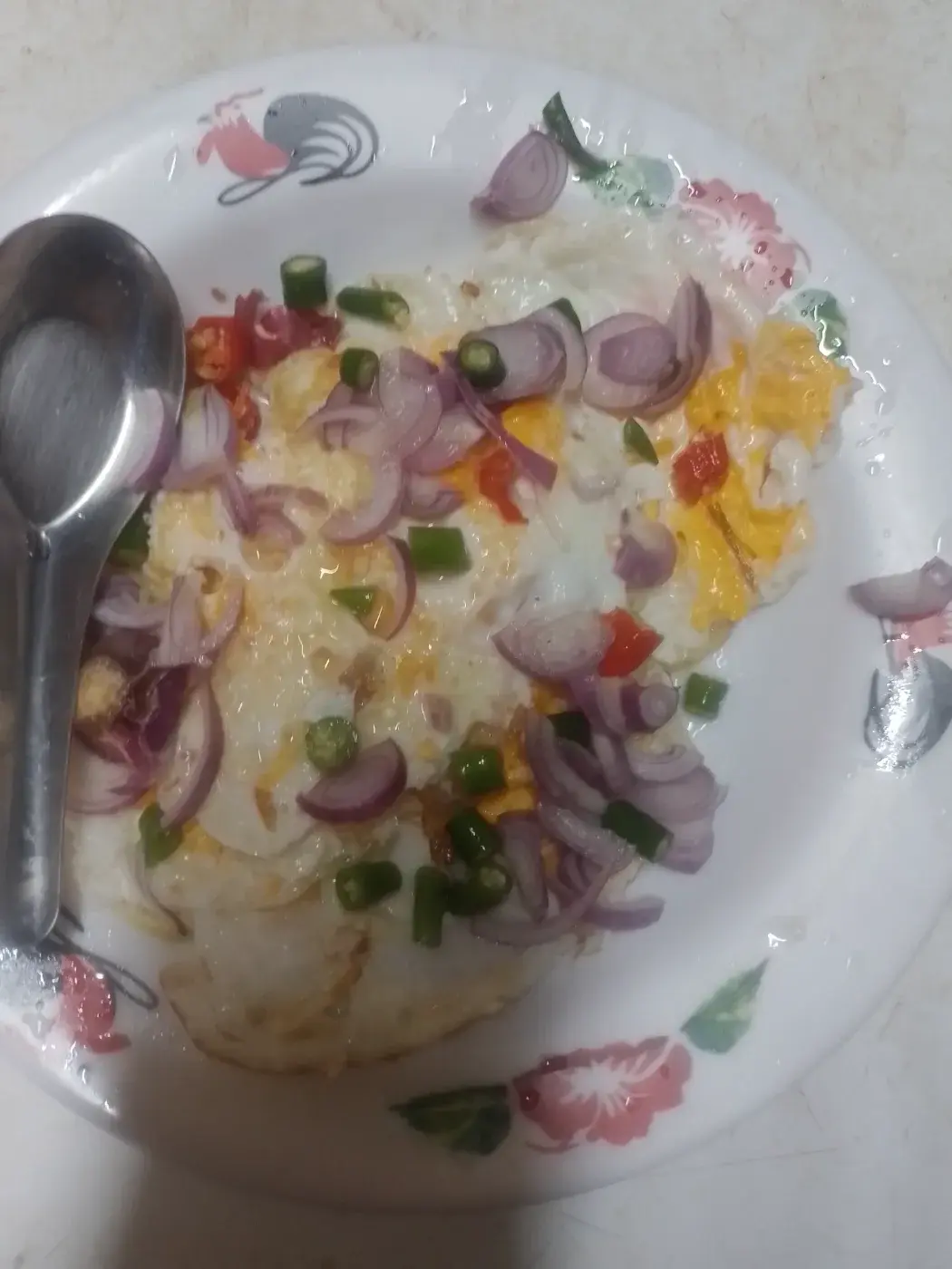2.หั่นหอม หั่นพริกโรยบนไข่ดาว (ขอบ่นนิดตอนหั่นหอมน้ำตาไหลเลย)