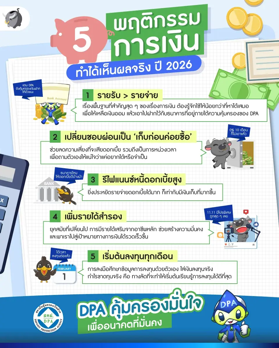 ช่วงขึ้นปีใหม่ พี่ทุยเชื่อว่าเป็นช่วงที่หลายคนมักจะตั้ง New Year Resolution กัน เพราะเป็นช่วงที่ได้พลังเชิงบวกจากการเปลี่ยนปีปฏิทินให้ลุกขึ้นมาทำอะไรใหม่ ๆ ก่อนที่ไฟจะหมด พี่ทุยจะมาแนะนำ การเปลี่ยน 5 พฤติกรรมการเงินแบบเล็ก ๆ ถ้าทำได้บอกเลยว่า ปี 2026 จะเป็นปีที่สุขภาพการเงินทุกคนดีขึ้นอย่างแน่นอน