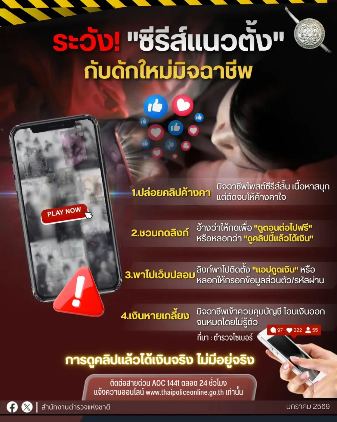 เตือนภัยสายป๊อป! มิจฉาชีพหัวใสใช้ "ละครสั้นแนวตั้ง" ล่อซื้อ ลวงให้กดลิงก์ดูดเงิน