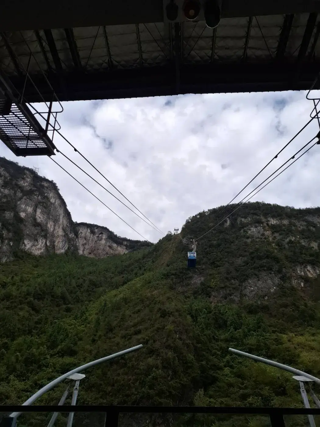วันนี้เรายังอยู่ที่เมืองฟูหลิง หลังจากอาหารกลางวันอันแสนอร่อย เราก็เดินทางมาที่ หุบเขารอยแยกอู่หลิงซาน ซึ่งเป็นจุดชมวิวที่มีชื่อเสียง มีหน้าผาที่สูงใหญ่ และรอยแยกบนพื้นดิน โดยเฉพาะรอยแยก ชิงเทียนเสีย ซึ่งจะต้องนั่งกระเช้าลงไปค่ะ ลงไปลึกมาก คือดูแล้วน่ากลัวกว่าลงลิฟท์แก้วนะคะ และตอนที่ขึ้นกระเช้าต้องเล็งให้ดี กระเช้าจะไม่จอดสนิท แต่มันแค่ชะลอตัว เราจะต้องกระโดดขึ้นไปค่ะ ด้วยความว่องไว และแม่นยำ ตอนลงกระเช้าก็เหมือนกันค่ะ เขาจะไม่จอดสนิท ต้องลงด้วยความว่องไว และแม่นยำเหมือนเดิม แต่ทั้งตอนขึ้นและลง ก็จะมีเจ้าหน้าที่นะคะ เราก็สามารถบอกเขาตอนลงได้ว่า Help me Help me (แอบอาย) แต่ตอนขึ้นบอกไม่ได้ค่ะ มันต้องรวดเร็วมาก