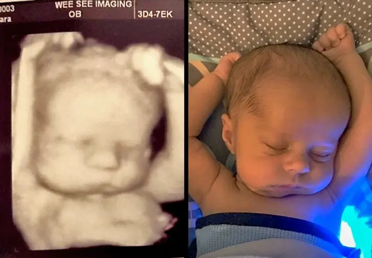 2. โันแน่ใจได้ว่าไม่มีใครแอบสลับลูกฉันตอนคลอดออกมาแน่ ภาพเปรียบเทียบพัฒนาการในท้องตอน 3 สัปดาห์ก่อนคลอด กับ 3 สัปดาห์หลังคลอดออกมาแล้ว