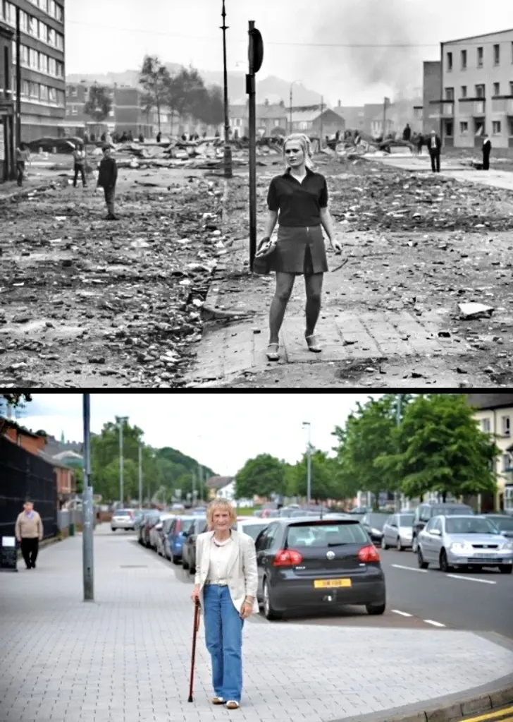20. หนึ่งในผู้เข้าร่วมการเคลื่อนไหวเพื่อสิทธิพลเมืองในการต่อสู้ที่บ็อกไซด์ (เดอร์รี่ ไอร์แลนด์) ถ่ายภาพ ณ จุดเดิม เมื่อหลายปีต่อมา