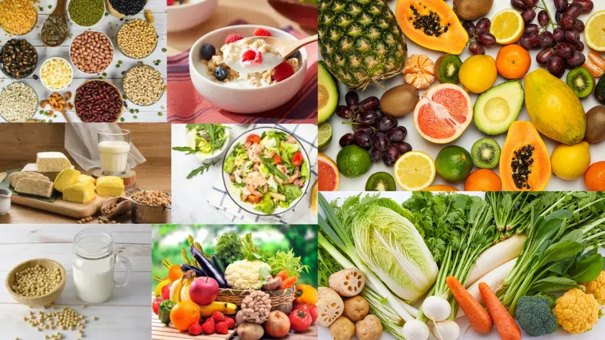 4.ผักผลไม้หลากหลายสี ปริมาณ 400 กรัมต่อวัน สำหรับผลไม้แนะนำไม่เกินวันละ 2-3 ส่วน 1 ส่วน ประมาณ 1 กำปั้น เช่น แอปเปิ้ล 1 ผลเล็ก ส้ม 1 ผลกลาง กล้วยน้ำว้า 1 ผล กล้วยหอม ½ ผล แก้วมังกร 6 ชิ้น มะละกอ 6 ชิ้น แนะนำเลี่ยงผลไม้รสชาติหวานจัด เช่น ทุเรียน ขนุน ลำไย อาหารที่มีใยอาหารสูงจะช่วยเรื่องการขับถ่าย ควบคุมระดับไขมันคอเลสเตอรอล ให้รู้สึกอิ่มนานขึ้น จึงอาจมีส่วนช่วยเรื่องการควบคุมน้ำหนักตัวได้ ยังมีสารต้านอนุมูลอิสระ ที่ลดความเสี่ยงของโรคไม่ติดต่อเรื้อรัง และ การชะลอวัย