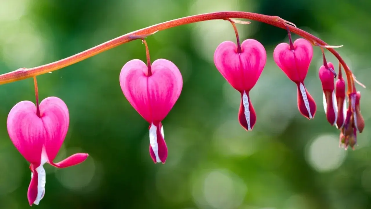 จุดเด่นที่สุดของดอกนี้ก็คือรูปทรงที่เหมือนหัวใจจริง ๆ แถมยังมีหยดเล็ก ๆ ห้อยอยู่ด้านล่าง ดูเหมือนหัวใจกำลัง “หยดเลือด” เลยเป็นที่มาของชื่อ Bleeding Heart มีทั้งสีขาวและสีชมพูอ่อน ๆ ให้ความรู้สึกอ่อนหวาน โรแมนติก และค่อนข้างเปราะบาง ดอกจะบานในช่วงปลายฤดูใบไม้ผลิไปจนถึงต้นฤดูร้อน พอถึงช่วงนั้นทั้งต้นจะดูสดใสขึ้นมาทันที