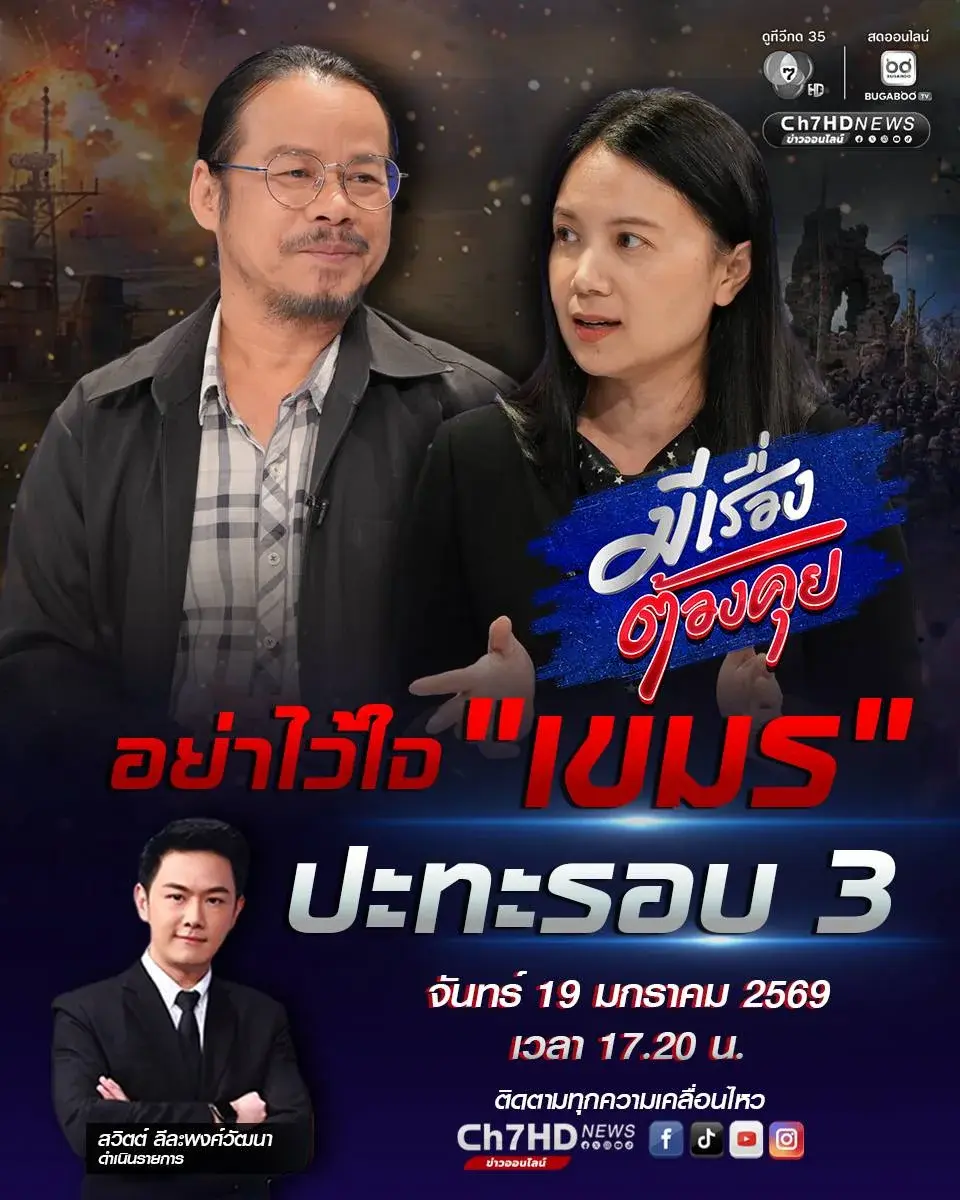 มีเรื่องต้องคุย เย็นนี้กับประเด็นอย่าไว้ใจ "เขมร" สัญญาณปะทะรอบ 3