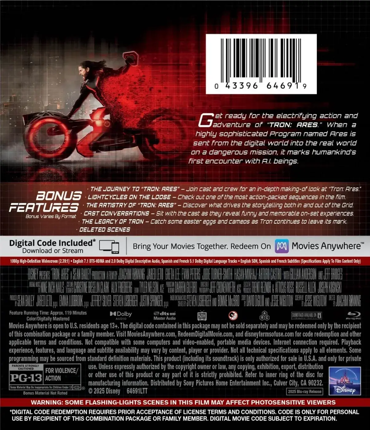 4.Soundtrack ประกอบภาพยนตร์โดย NINE INCH NAILS (Trenz Reznor & Atticuss Ross) เห็นว่าเรื่องอื่นทำได้ดี แต่เรื่องนี้กลับน่าผิดหวัง ใครจะชอบก็ชอบ ไม่ว่ากัน แต่สำหรับครีเอเตอร์ในเรื่อง TRON ARES มันกลับไม่รู้สึกถึงจังหวะ Beat ที่ต้องการ ไม่เหมือนที่ Daft Punk เคยทำไว้ใน TRON LEGACY (2010) ที่ทรงพลัง รู้สึกถึงการสูญเสีย รู้สึกถึงความเข้มแข็งที่ต้องฝืนทนจากการต่อสู้ ฟังแล้วขนลุกกับทำนองของ Sound ประกอบ