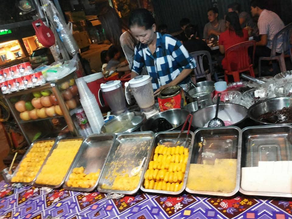 สิ่งที่เรานั้นชี้แต่ละอย่างนั้นไม่ได้แยกกัน แต่นำมารวมกัน ตักใส่หมดเลยในสิ่งที่เรานั้นไม่กิน ช้อนนั้นตักเร็วมาก มองเหมือนกันกับการแถมที่เรานั้นไม่ต้องการ ตักตามใจของเราหากว่าต้องการอะไร ราคานั้นคิดคือถ้วยละ 2500 เรียล เราเองก็มองคิดในใจว่าหากว่าเราน้้นจะมองจะไม่ยอมทร่จะให้เขานั้นผสม แต่เขานะ้นมองเราว่าเราแปลก