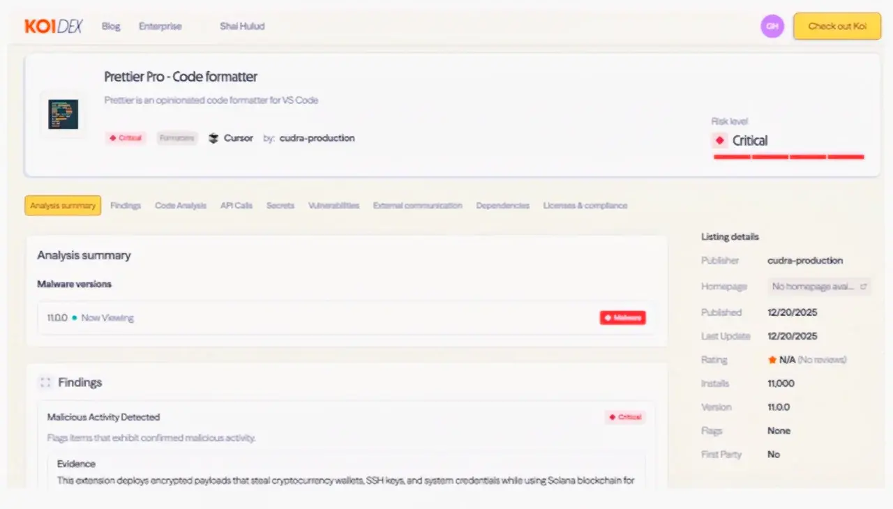 จากรายงานโดยเว็บไซต์ TechNadu ได้กล่าวถึงการกลับมาของมัลแวร์ GlassWorm รุ่นใหม่ที่มีความสามารถในการเข้าถึงระบบ macOS ซึ่งแต่เดิมนั้นตัวมัลแวร์เคยโจมตีระบบ Windows ผ่านทางการแอบอ้างตัวเป็นส่วนเสริมของเว็บเบราว์เซอร์ (Extension) ที่มีชื่อว่า Visual Studio Code แต่ในคราวนี้สำหรับเวอร์ชัน macOS นั้น ตัวมัลแวร์กลับแอบอ้างตนเป็น Extension สำหรับเว็บเบราว์เซอร์บน macOS ซึ่งส่วนเสริมนี้มีอยู่ 3 ตัว (ทางแหล่งข่าวไม่ได้บอกชื่อไว้) โดยส่วนเสริมนั้นถูกปล่อยให้ดาวน์โหลดบนตลาดส่วนเสริม Open VSX Marketplace ซึ่งมีผู้ตกเป็นเหยื่อดาวน์โหลดไปแล้วมากถึง 50,000 ราย