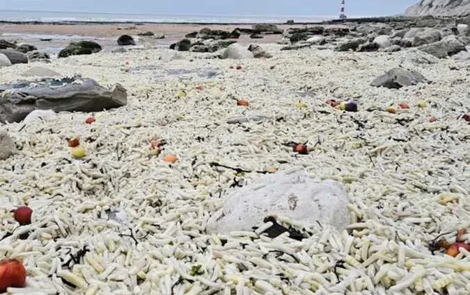 เมื่อไม่นานมานี้ พบมันฝรั่งทอดแช่แข็งและถุงพลาสติกจำนวนมากปรากฏอยู่บนชายหาดในซัสเซ็กซ์ ทางตะวันออกเฉียงใต้ของอังกฤษ สร้างความประหลาดใจและความกังวลให้กับชาวบ้านในพื้นที่ หน่วยยามฝั่งของสหราชอาณาจักรยืนยันว่าเหตุการณ์ดังกล่าวเกิดจากตู้คอนเทนเนอร์ 16 ตู้ตกลงมาจากเรือบรรทุกสินค้า ทำให้มีอาหารและบรรจุภัณฑ์จำนวนมากถูกกระแสน้ำพัดพาไปเกยฝั่ง