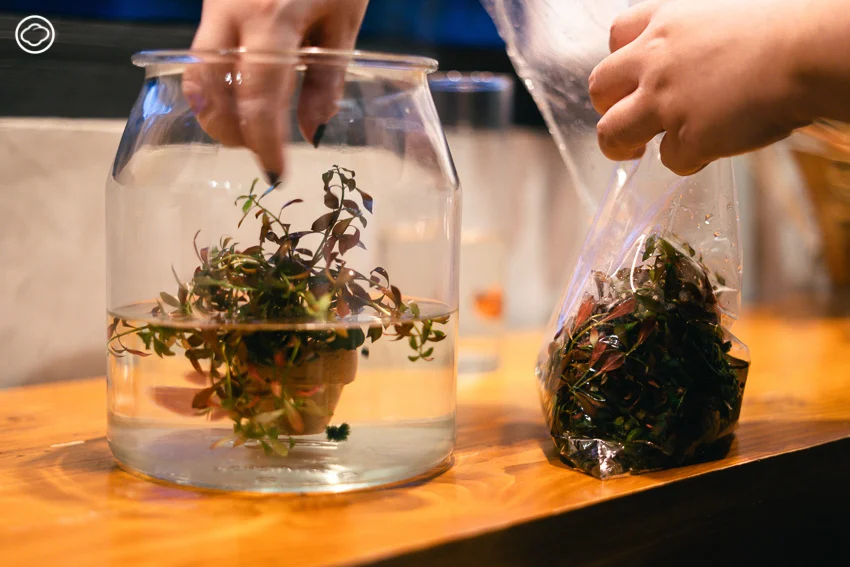 5. ไม้น้ำ ต้องมีให้ปลากัดได้พักพิง อย่างน้อยควรจะมีไม้น้ำสักหนึ่งต้น ให้ปลากัดได้เอาตัวไปพาดพิงอยู่ ตามนิสัยที่ชอบซุ่มในต้นไม้น้ำตามธรรมชาติ ช่วยลดความเครียดต่อปลา จะเป็นไม้น้ำชนิดใดก็ได้ที่ไม่จำเป็นต้องถูกแดด เพราะไม้บางอย่างถ้าไม่ถูกแดดก็เหี่ยวเน่าเร็ว ส่วนใหญ่นิยมใช้สาหร่ายหางกระรอก สามารถสั่งออนไลน์มาก็ได้หรือซื้อจากร้านขายสัตว์น้ำก็ได้ ราคาไม่กี่สิบบาทเท่านั้น