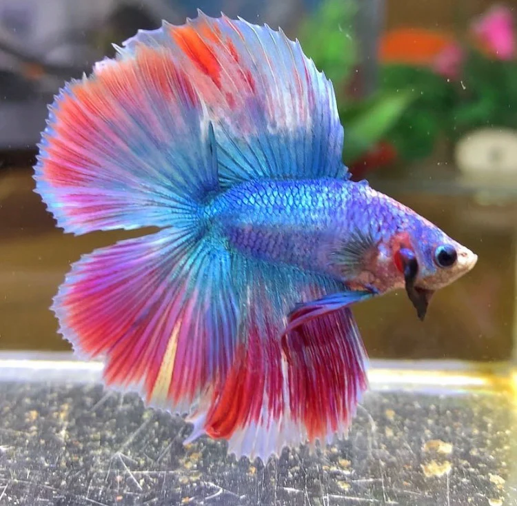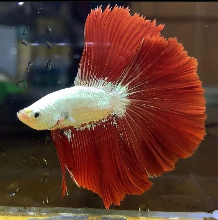 ปลากัดฮาล์ฟมูน (Halfmoon Betta) หางพระจันทร์ครึ่งซีก ครีบหางสวยงามอลังการเหมือนใบพัดพลิ้วครึ่งวงกลมที่กำลังแผ่ 180 องศา เป็นที่นิยมมาก