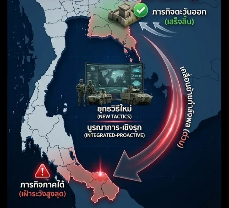 แต่สิ่งที่น่าจับตามองกว่า คือ "ก้าวต่อไป" ของกองทัพครับ เพราะมีสัญญาณชัดเจนว่า ทรัพยากรและกำลังพลที่เคยต้องทุ่มเทไปทางตะวันออก กำลังถูกเบนเข็มกลับมาโฟกัสที่ปัญหาเรื้อรังอย่าง "ชายแดนภาคใต้" อีกครั้ง และครั้งนี้ดูเหมือนจะไม่ใช่การ "ตั้งรับ" แบบเดิมๆ