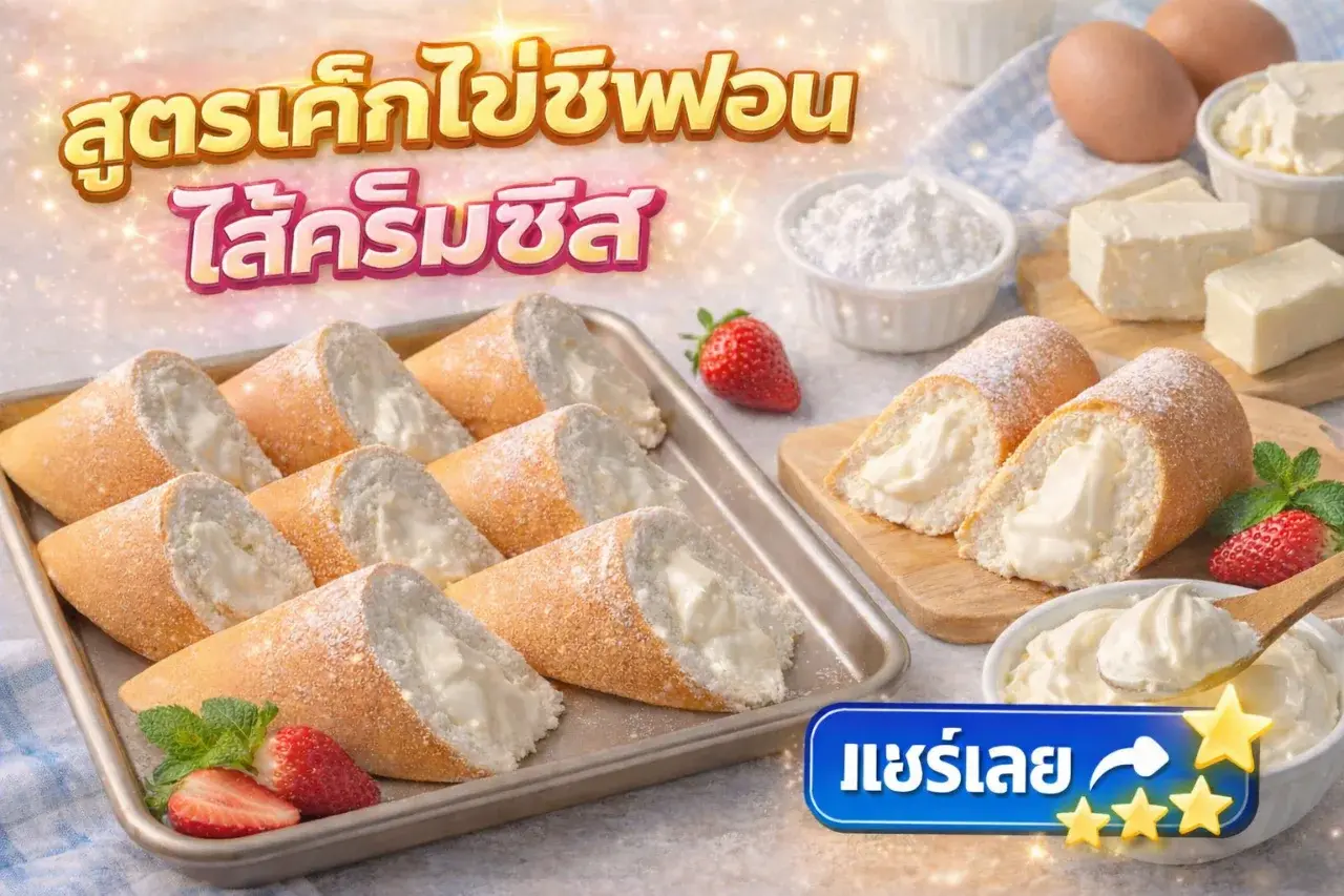 สูตรเค้กไข่ชิพฟอนไส้ครีมชีส นุ่ม อร่อย ทำง่าย!