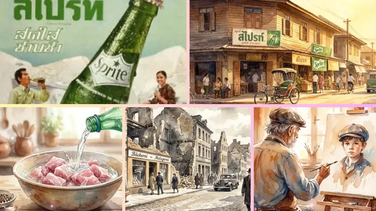 การแทรกซึมสู่ครัวไทยและภูมิปัญญาชาวบ้าน เมื่อเข้าสู่ไทยในปี พ.ศ. 2510 สไปรท์ไม่ได้เป็นแค่เครื่องดื่ม แต่ถูกประยุกต์ใช้ในก้นครัวอย่างน่าอัศจรรย์ โดยเฉพาะการนำไป "หมักหมู" ซึ่งมีคำอธิบายทางวิทยาศาสตร์รองรับว่ากรดในเครื่องดื่มช่วยสลายโปรตีนทำให้เนื้อนุ่ม และน้ำตาลช่วยสร้างปฏิกิริยาคาราเมลให้เนื้อมีสีสันสวยงามและกลิ่นหอมเมื่อถูกความร้อน