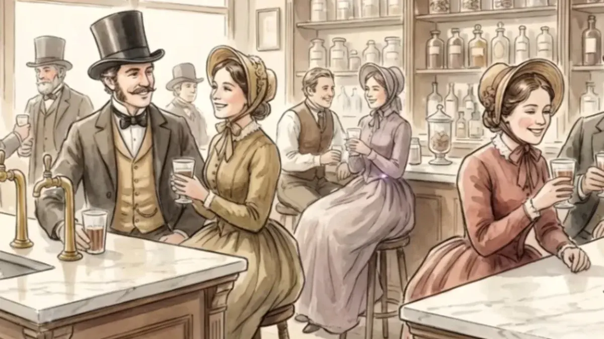 ในช่วงศตวรรษที่ 19 ร้านขายยาในสหรัฐอเมริกาไม่ได้เป็นเพียงที่สำหรับซื้อยา แต่เป็นจุดนัดพบทางสังคมที่มีเคาน์เตอร์ขายน้ำโซดา หรือ Soda Fountain เภสัชกรยุคนั้นมีบทบาทคล้ายกับบาร์เทนเดอร์ที่ต้องปรุงยาแบบสดๆ ทว่าปัญหาใหญ่คือยาสมุนไพรส่วนใหญ่มักมีรสขมจัดและกินยาก จึงเกิดไอเดียในการนำน้ำโซดาที่เชื่อว่าช่วยย่อยอาหาร มาผสมกับน้ำเชื่อมผลไม้และรากไม้เพื่อกลบรสขม จนเกิดเป็นเครื่องดื่มที่ให้ทั้งความอร่อยและสรรพคุณทางยา