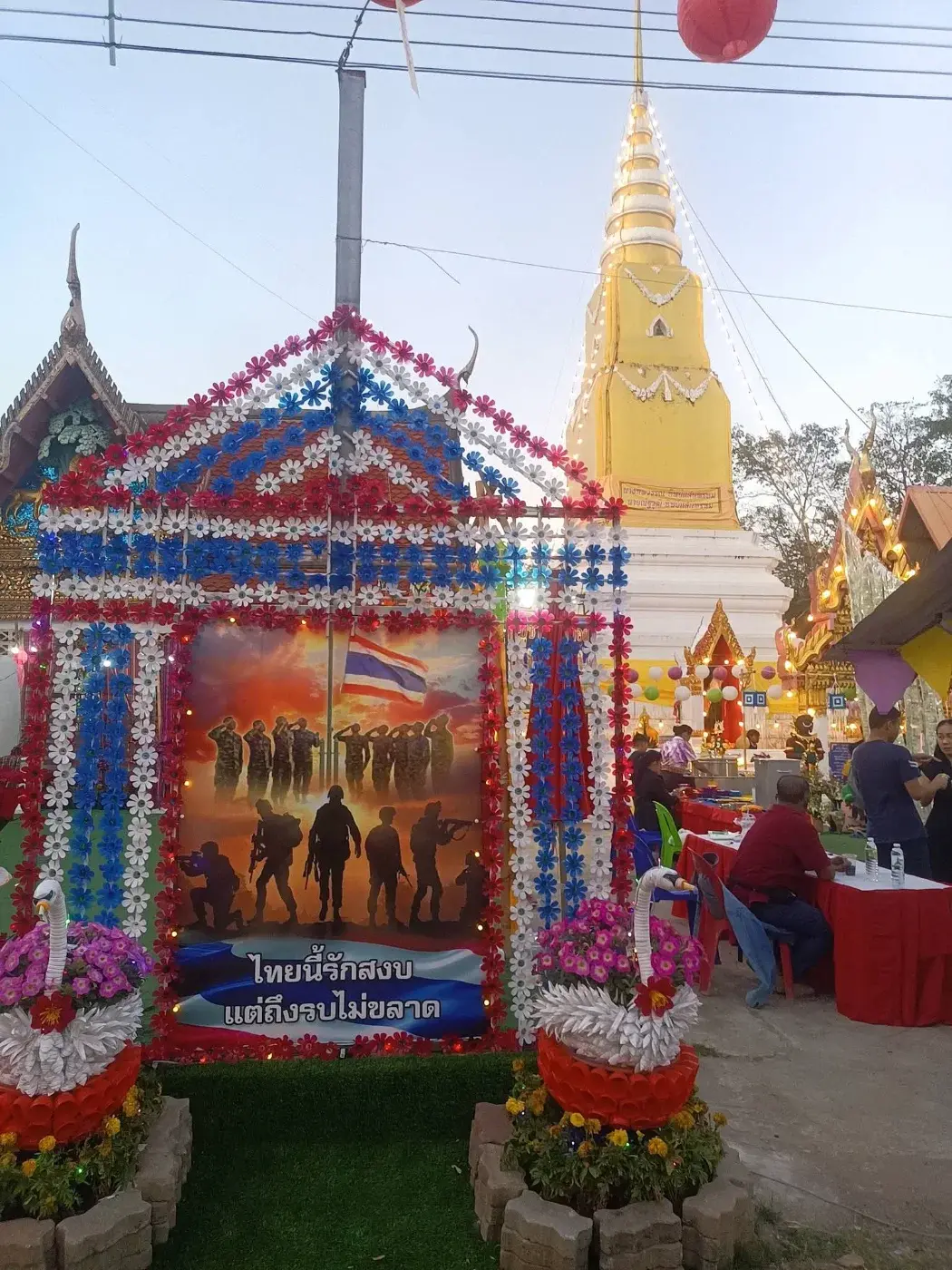 ไทยนี้รักสงบสิ่งที่บอกถึงความจงรักภักดี ต่อสิ่งที่ศักดิ์สิทธิ์และมีคุณค่า หากว่าจะกล่าวถึงความรักชาตินั้น ชาติที่ยังคงอยู่ เสมอ มีความรักรักในเนื้อที่ที่เรียกว่าแผ่นดิน ก่อนหน้านั้นเราเคยคิดว่า ฝนปัจจุบันที่มีในส่วนของความเจริญแล้ว จะยังสงครามไหมแต่พอเราน้้นมาเจอในส่วนของตรงนี้ นั้นเราปลื้มใจ ทุกครั้งที่เห็นธงชาติไทยเรานั้นภาคภูมิใจอย่างมาก