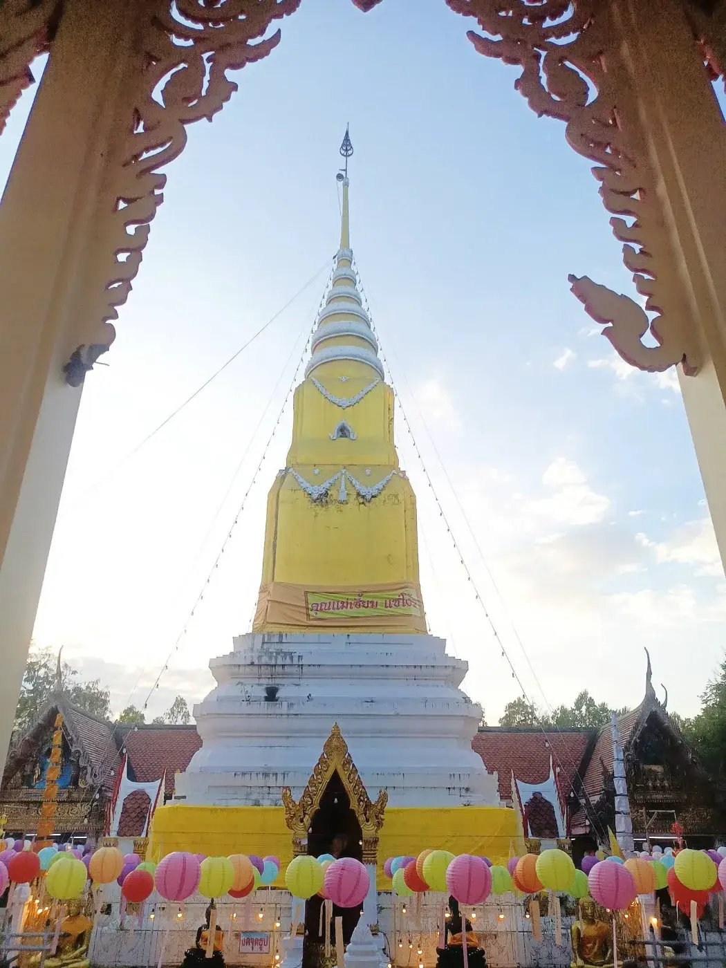 ประตูแห่งความสุข เส้นทางที่สนุกสนานสีขาวด้านบนสีเหลืองตาม ลักษณะนั้นเหมือนพระธาตุนาดูนหรือหลากหลายที่ในอีสาน
