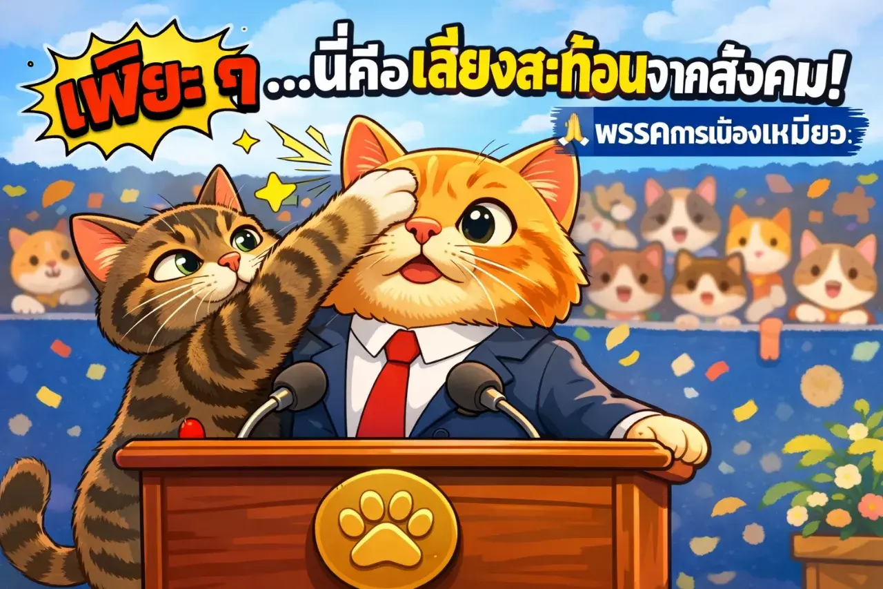 เหล่า นักการเมืองเหมียว จากหลากหลายสายพันธุ์ผลัดกันขึ้นเวที—บางตัวพูดเก่ง บางตัวพูดเยอะ แต่ไม่มีตัวไหนพูดตรงประเด็น