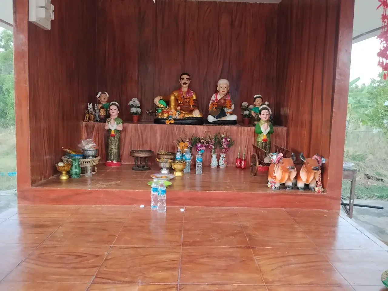 ภายในนั้นจะมีในส่วนของเจ้าสัวที่อยู่ด้านหน้าคอยปกป้องรักษา มีสนม มีลูกหลานคอยอยู่เคียงข้างไม่ห่างไปไหน การไหว้นั้นจะใช้ในส่วนของขันธ์ 5 และน้ำเปล่าไหว้กราบ หากว่าบ้านเรานั้นจะใช้ในส่วนของไหมจีบกับยาสูบ เพราะเชื่อว่าคนเฒ่าคนแก่นั้นชอบเคี้ยวหมาก และสูบยาเส้น