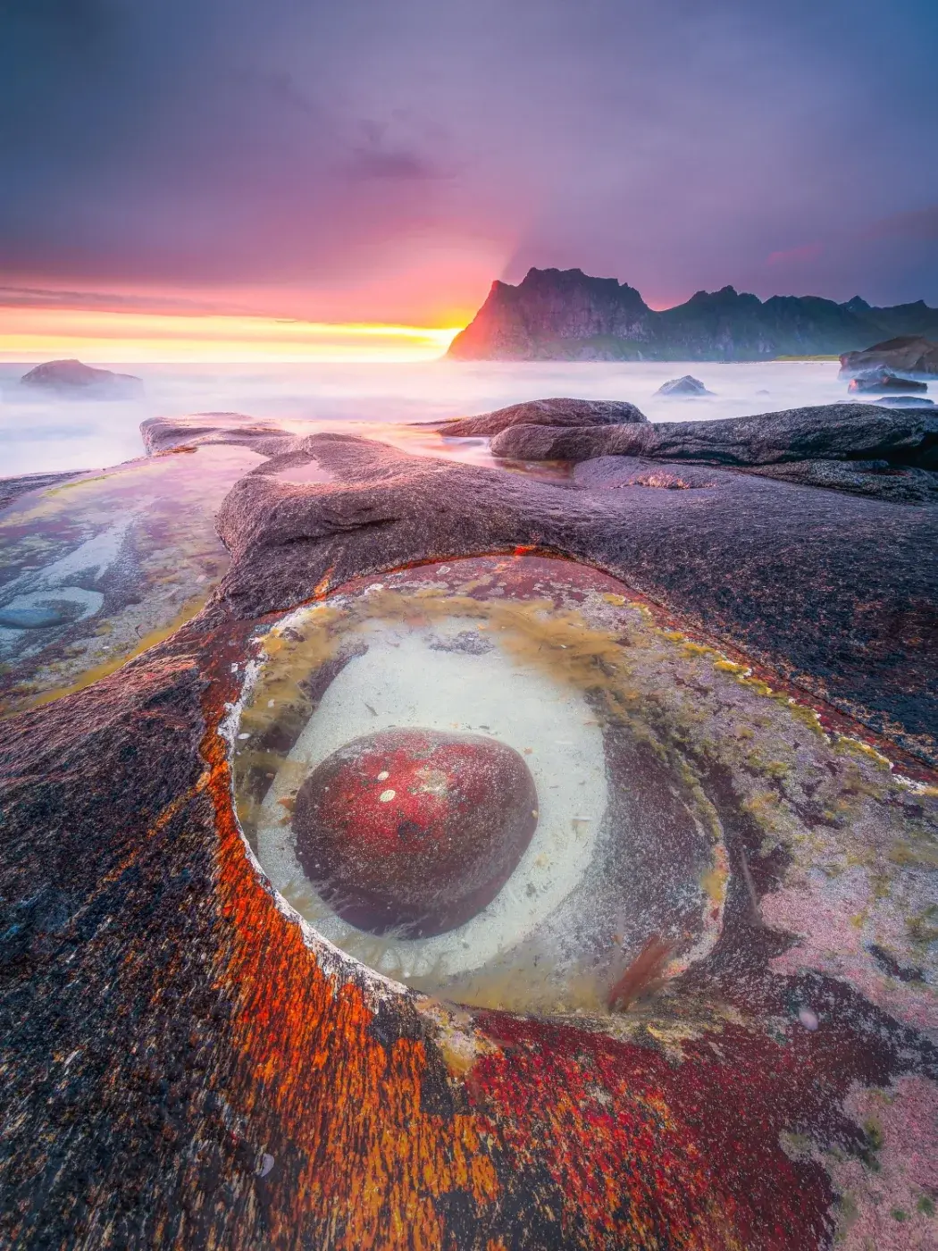 เคยไหม เวลาเห็นภาพธรรมชาติแปลก ๆ แล้วรู้สึกเหมือนมันไม่ใช่แค่หิน ไม่ใช่แค่น้ำ แต่เหมือนมีอะไรบางอย่างกำลัง “มองกลับมาหาเรา” อยู่ นั่นแหละคือความรู้สึกที่หลายคนเจอเมื่อได้เห็นสิ่งที่เรียกว่า “ดวงตามังกร” หรือ Dragon’s Eye ที่หาด Uttakleiv ในหมู่เกาะ Lofoten ประเทศนอร์เวย์ ที่นี่เป็นหนึ่งในจุดมหัศจรรย์ของธรรมชาติที่ทั้งสวย ทั้งลึกลับ และดูเหมือนหลุดออกมาจากโลกแฟนตาซี